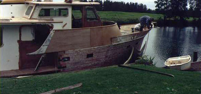 - Main stringer from bow to stern passing through engine room not thoroughly seasoned and suffers major cross sectional shrinkage this in turn causes side decks to collapse and trap water causing extensive rot.