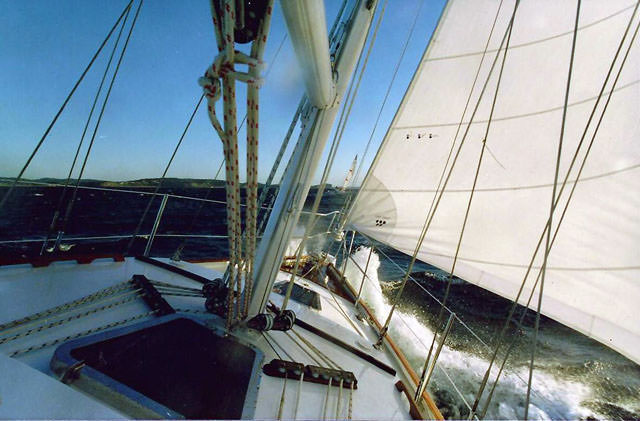 Keel cooled Perkins, custom made refrigerator and freezer, extensive teak trim to cockpit, with moulded lexan screen with stainless steel trim.